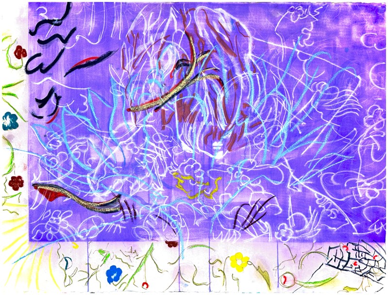 inks, watercolours, pastel, paper. 75cm x 55 cm. 19/12/2023