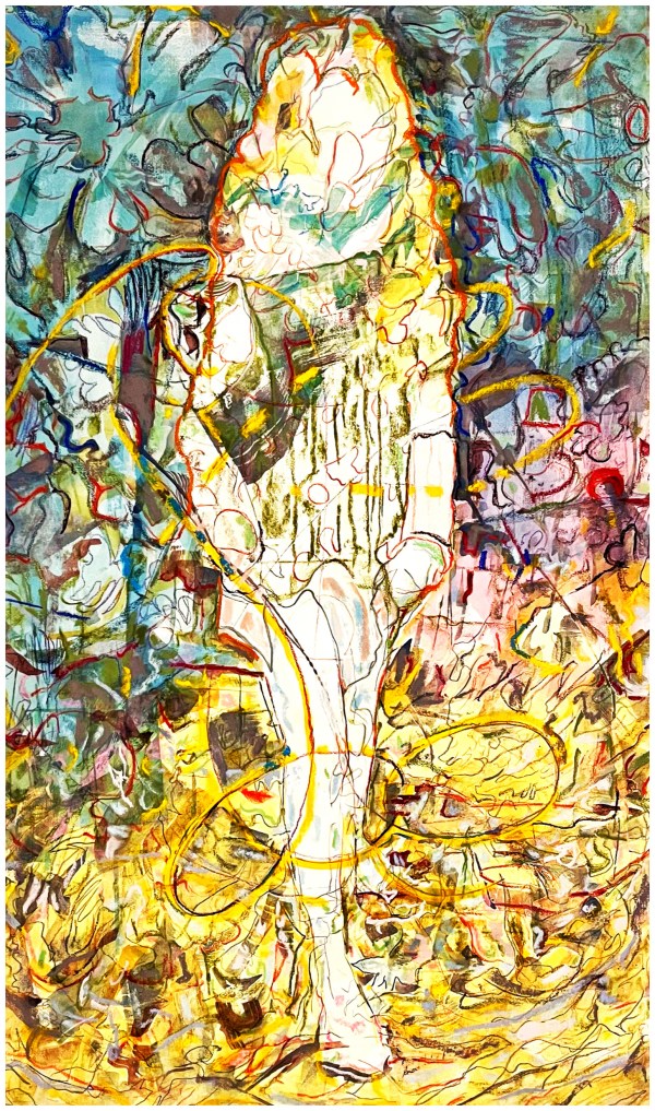 “j’attends” aquarelle, inks, pastel. 120cm x 50cm 12-13/12/22 https://www.instagram.com/christophermarcford/