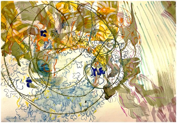 cauchemar des fleurs aquarelle, ink, pastel. 80x60cm01/12/22 « J’ai le cœur sur la main, et la main percée, et la main dans le sac, et le sac est fermé, et…