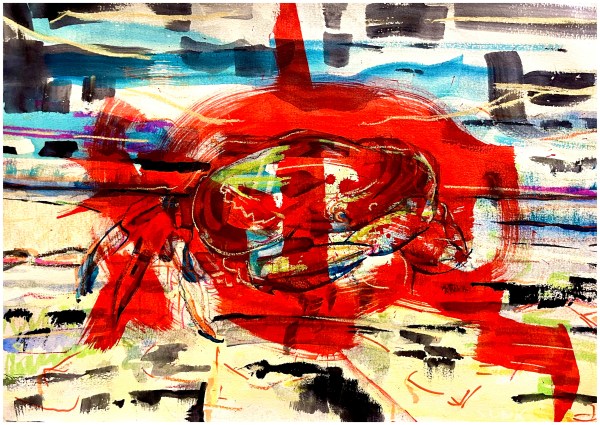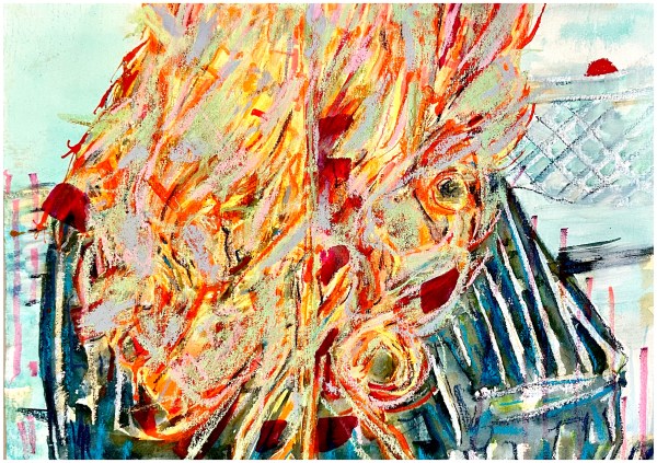 aquarelle, ink, pastel, paper45x30cm16/08/22 “Today is the day after the last day on Earth. It’s such a glad day!After a very, very, very bad dayAfter today, who can say?” – C…