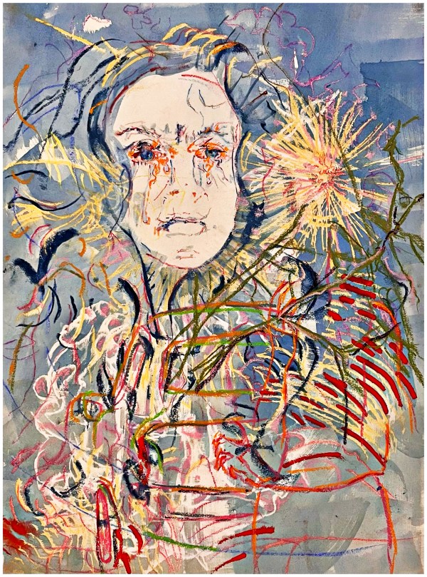 Portrait of J six, “i kicked a boy”, (transparence, shameplant, elm) 65cm x 45cm 02-03/03/23 “When the weather’s fine, when it’s sunny outsideThink about the time I kicked a boy…